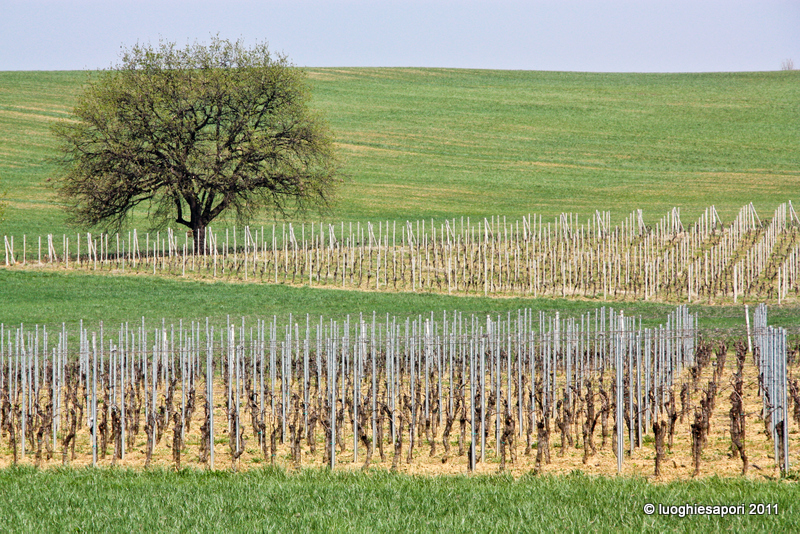 Un paesaggio quasi appenninico, percorso da strade strette e tortuose fiancheggiate da alberi imponenti, precede la valle del Lemme nei pressi di Gavi per chi come noi, su indicazione del navigatore, scavalca il colle anzichè aggirarlo provenendo dall’uscita autostradale di Serravalle: siamo in pieno Oltregiogo, “al di là del passo dei Giovi”. A questi luoghi, storicamente d’influenza ligure, il vitigno Cortese ha fatto conoscere decenni or sono un successo che è andato scemando nel tempo: erano i ’70, gli anni in cui Mario Soldati dava alla luce il suo Vino al Vino. Oggi pare che molti abili produttori stiano tentando di ripristinare l’antico prestigio di questa denominazione, e noi siamo andati a visitarne qualcuno esplorando il territorio del comune di Gavi (la cui DOC reca la dicitura “Gavi del comune di Gavi”) nonché di Tassarolo (“Gavi del comune di Tassarolo”), spingendoci fino al piccolo centro di Parodi Ligure.