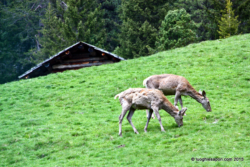 17a – Val di Funes (BZ) – Daini brucano nei pressi dello Zanser Schwaige