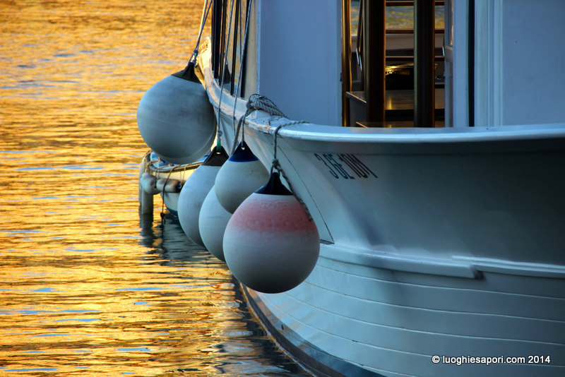 Camogli (GE) – Riflessi dorati nell’acqua del porto al tramonto