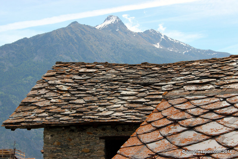 Champ Lorensal (AO) – Prospettiva dei monti dai tetti in ardesia